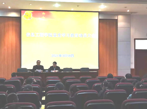 3月18日下午,信息工程学院在工科2号楼610会议室召开党史学习教育动员大会。认真学习贯彻习近平总书记重要讲话精神和党中央决策部署,对学院开展党史学习教育进行动员,全体院领导和教职工参加了会议。会议由院长付主木主持。